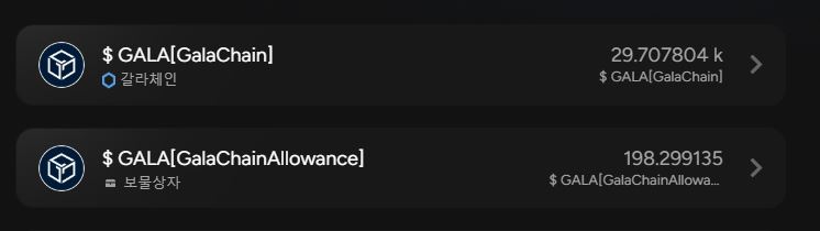우리가 입금할 GALA를 찾으면 아래와 같이 네트워크 2개가 나옵니다.