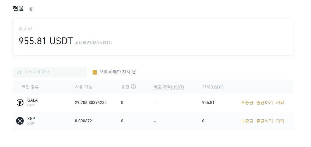 거래 완료 후, gala chain 잔고를 보니 0으로 보이네요. 당연한 결과이지만.