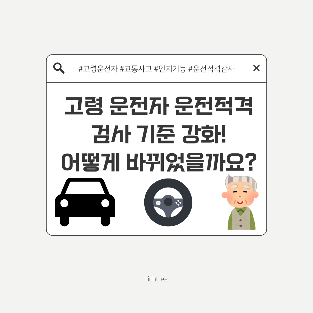 고령 운전자의 교통사고 증가는 초고령 사회의 심각한 이슈입니다. 정부에서는 운전적격검사 기준 강화를 통해 안전 운전 역량을 정확히 평가하고, 교통사고 감소를 위한 대책을 내놓았는데요. 인지기능 검사 강화, 자격유지검사 대체 제한, 재검사 기준 강화, 의료적성검사 강화 등 주요 변경 사항을 자세히 살펴보고, 더 안전한 교통 환경 조성에 기여하는 방법을 함께 고민해 보도록 하겠습니다.
