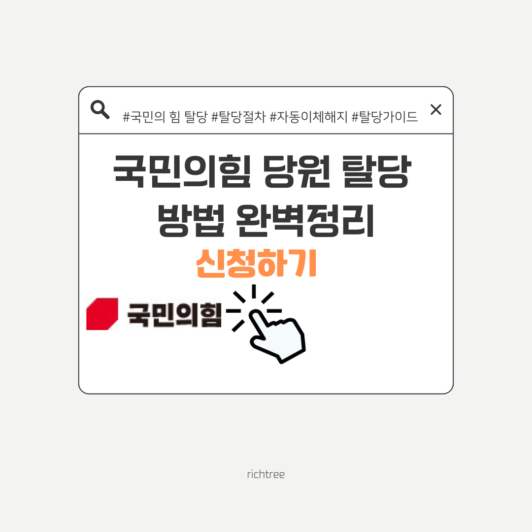 오늘은 국민의힘 탈당 절차에 대해 정리해보도록 하겠습니다. 국민의 힘 탈당을 고민 중이시라면, 아래 글을 통해 탈당 과정과 주의사항, 그리고 숨겨진 팁까지 확인해보시기 바랍니다.