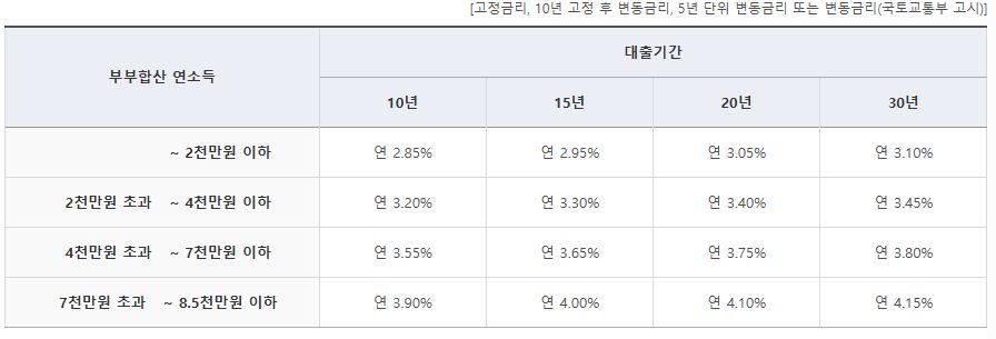 • 신혼 가구: 연소득 8.5천만 원 이하 (혼인관계증명서상 혼인신고일로부터 7년 이내 또는 3개월 이내 결혼예정자)