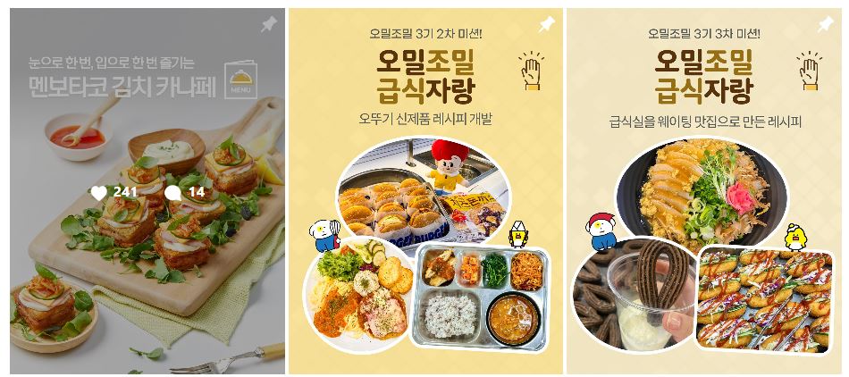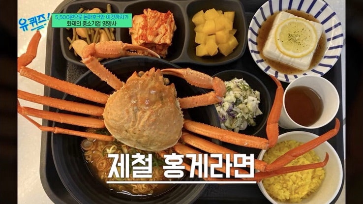 자, 그럼 이제 여러분이 가장 기다리시던 순간! 김보영 영양사님의 마법 레시피를 살짝 공개할게요! 🤫 먼저 홍게 라면! 🦀 신선한 홍게를 아낌없이 넣어 시원하고 깊은 국물 맛이 일품이라고 하는데요, 여기에 탱글탱글한 면발과 아삭한 채소의 조화는… 말해 뭐해! 🤤 직원들의 극찬이 끊이지 않는다는 소문이 있던데, 정말 궁금하네요!