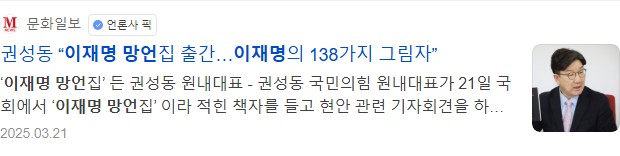 2025년 3월 21일, 국민의 힘 권성동 원내대표는 취임 100일을 기념하여 '이재명의 138가지 그림자'라는 부제의 자료집을 공개했습니다. 이 자료집은 이재명 대표의 성남시장 시절부터 최근까지의 발언들을 모아 총 173페이지 분량으로 구성되어 있습니다. 권 원내대표는 이 자료집을 통해 이재명 대표의 정치적 행보와 발언의 일관성을 지적하고자 했습니다.
