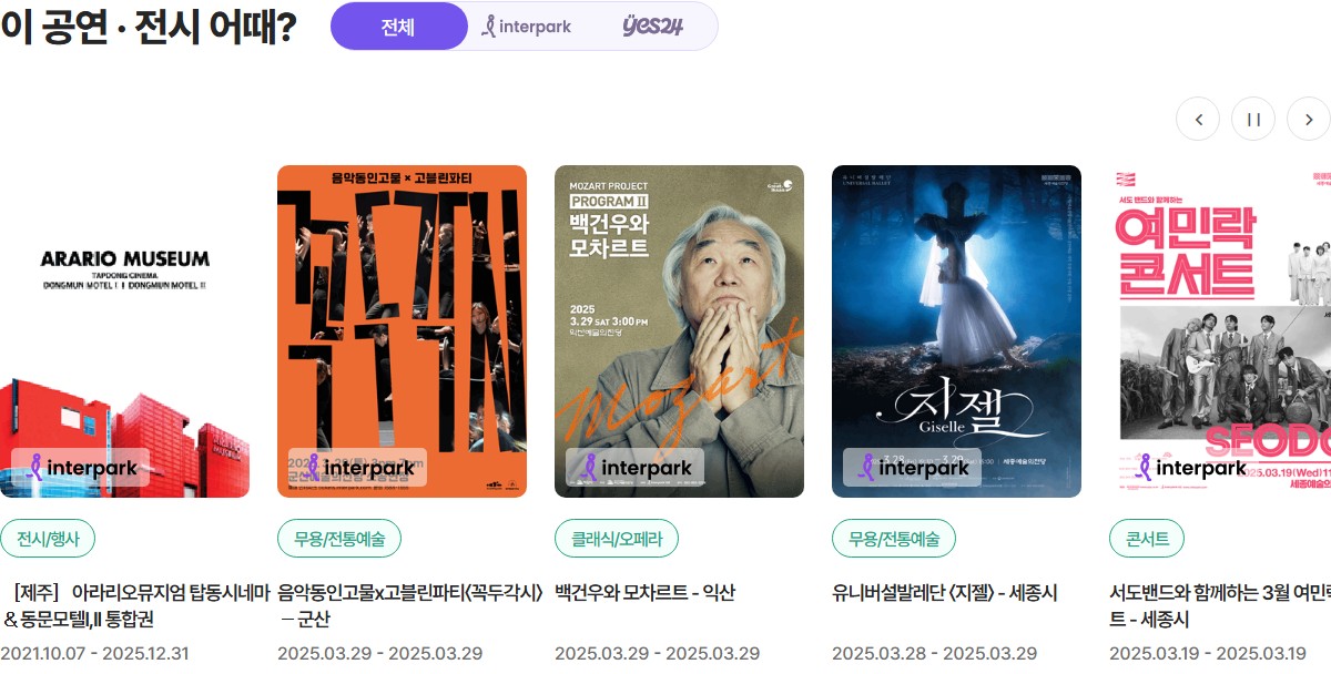 - 지원내용 : 1인당 연 10만원~15만원 공연,전시 관람비 지원(지역별 지원금액은 공지사항에서 확인!)