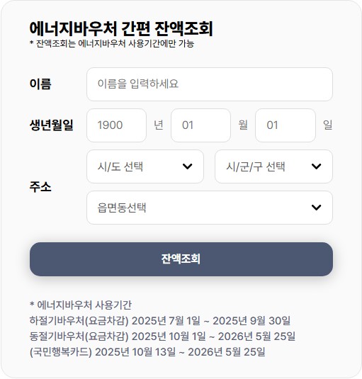 에너지바우처 지원 대상, 금액, 신청 방법 등은 매년 일부 변경될 수 있으니, 반드시 공식 홈페이지나 행정복지센터, 콜센터(1600-3190)를 통해 최신 정보를 확인시기 바랍니다.